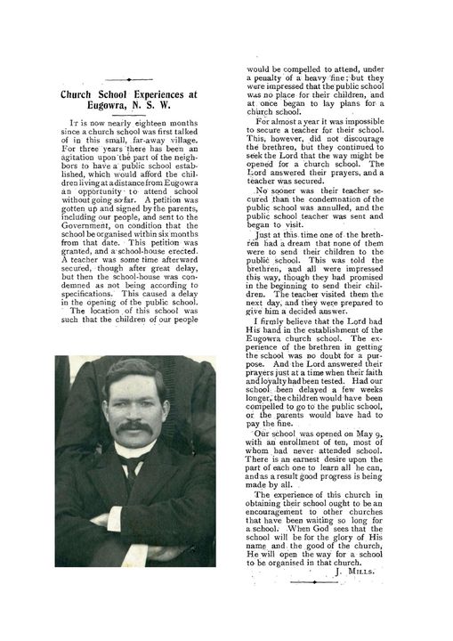 From 1904 – 1915, small schools saw teachers such as Joseph Mills, the first male teacher in Australian Adventist schools, and Rita Ford share the message with local children. Many of these travelled to study at the Australasian Missionary School (now Avondale University), and held significant ministerial and departmental roles in the South Pacific Division.